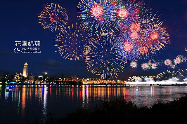 這次的煙火是跟著攝影社的一起拍,因為男友上班沒辦法去,就把全身的設備都託負給我了!!上回是跟男友及他的朋友一起拍,站在大稻埕,而我不想拍照只想好好欣賞美麗的煙火,上回的練習就沒跟到了。這次跟著攝影社的朋友,有得吃有得玩有得聊,大家一起等比較不無聊。不過在煙火施放之前,我因為機車停太遠了,想說手邊的設備這麼多,想停近一點,退場的時候走少一點的路… 殊不知~~~這麼一出場就是接近一個半小時才回們,為了美好的畫面有時候不得做出一些犧牲,但沒必要影響別人也跟著犧牲哩,之前不是有農民或傳統技藝的人們被這些攝影師弄到很不開心嗎?說實在真的要自重人重!