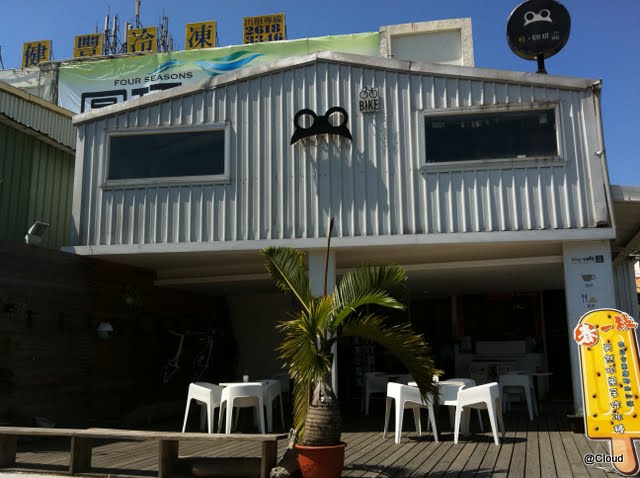 到了第一個會合點後,我們一行人繼續往北騎,到了八里蛙咖啡先休息一下。