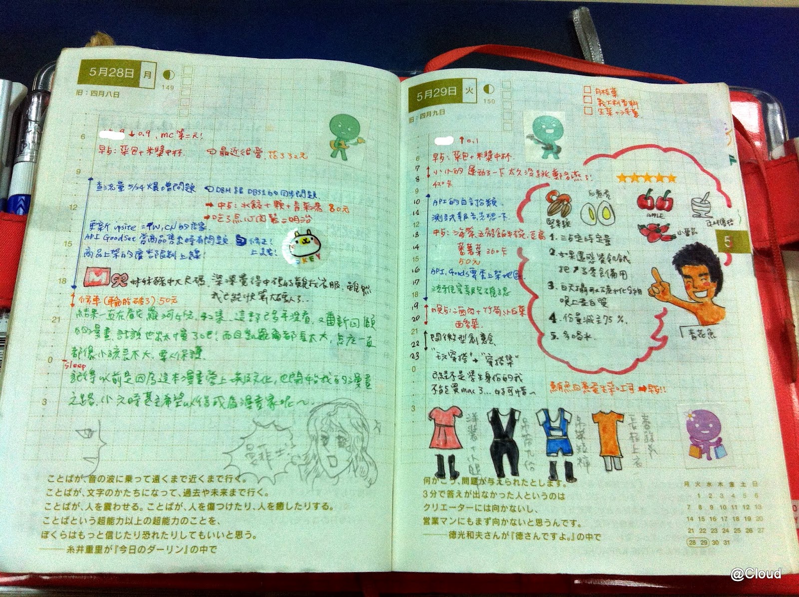 從5月開始就瘋狂的想買衣服跟穿搭,可能是減肥小有成果,就開始想買衣服了。 另外看了青花魚的減肥書,把一些用得到的小資訊畫上去,用繪圖除了增加樂趣,也增加了想看的 fu 呢~ |