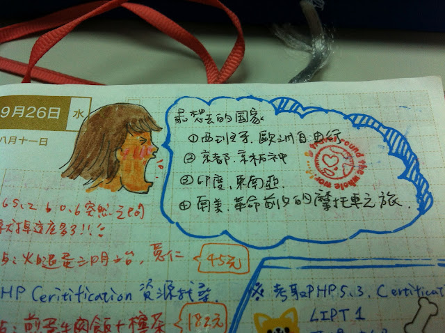 這個月去了義大世界,深深的覺得而要一本 TN 呀!將旅行時的票券、名片、紀念章及地圖都貼在那兒,我就不用帶著厚厚的 HOBO 出去了!而且也可以將這幾天的旅行小軼事用圖文日記畫下來,HOBO 的一日一頁在旅行中根本派不上用場