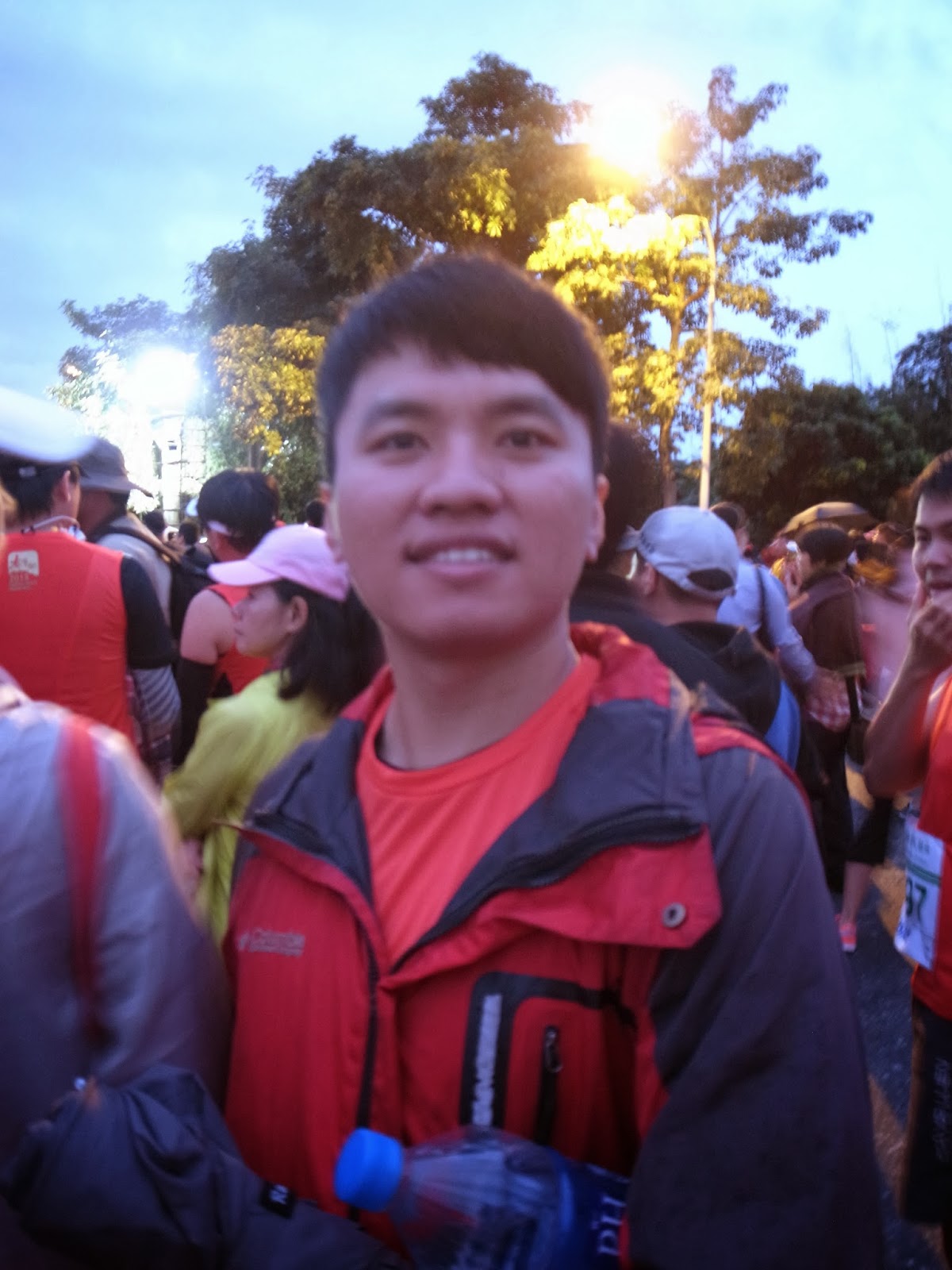 就位後,豬頭開始熱身,這時候天空開始下起濛濛細雨,希望不會影影比賽啊!接著舞台開始說,主辦單位決定將全程馬拉松改為半程馬拉松,因為前幾天在花蓮地區發生了芮式規模5+以上的地震,部分地區已經有崩塌的現象,所以只好決定將全程改半程,但獎金依舊不變。不過豬頭是跑半程的所以沒有影響。