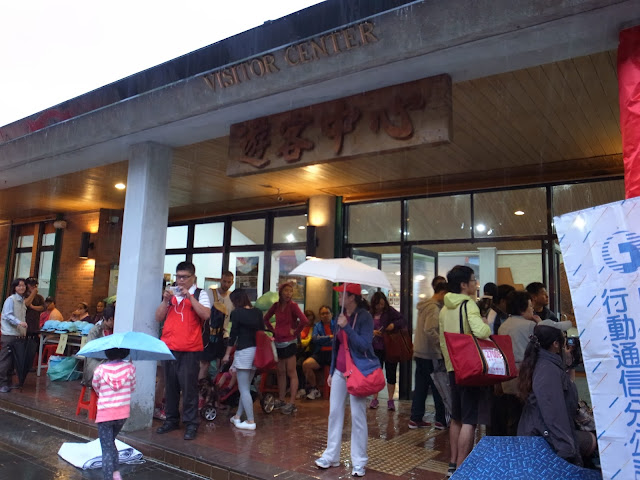 外頭開始下起雨來,雨愈來愈大,在旅客服務中心外頭的人們就都往裡頭鑽。而外頭的舞台也就泠泠清清的,睡了大約一小時後的我,已經無聊到打開 Notebook 看了半小時到一小時後,也無聊的起來到外頭看看。想說豬頭大約再半小時應該就會回來了。