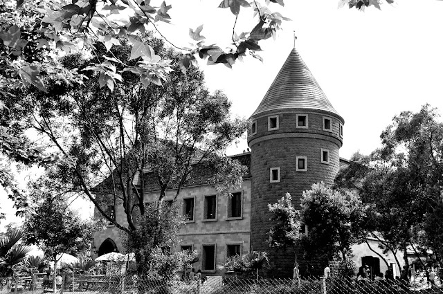 經過一個小彎後,不斷的爬上羊腸小徑,總算到了傳說中金中的城堡博物館啦!這小段路看起來就比北宜公路恐怖,而且因為路太小所以遊覽車不準上來。