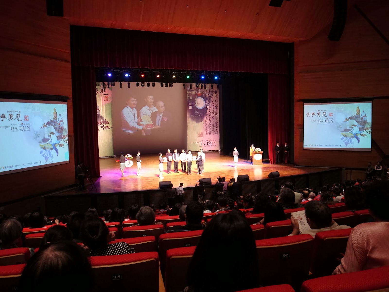 周六下午兩人就坐高鐵乘車下去,到了台中烏日站後,我們坐上接駁車,直奔大墩美展的頒獎會場,會場滿大的,感覺台中市政府非常重視這個活動,胡志強甚至還親自出席,而舉辦了18年的大墩美展還是許多美術人嚮往的活動,大家無不希望可以得獎,參與盛會,而只要得過獎的美術人,也會在未來有許多的邀約,作品也會提昇知名度及價值。
