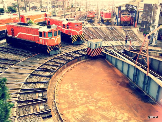 吃完阿璋肉圓就到扇型車庫,這裡我 n 年前跟立欣來過,記得當初沒能看到火車調度的情形,這次剛好的機會看到三次火車頭調度!好幸運