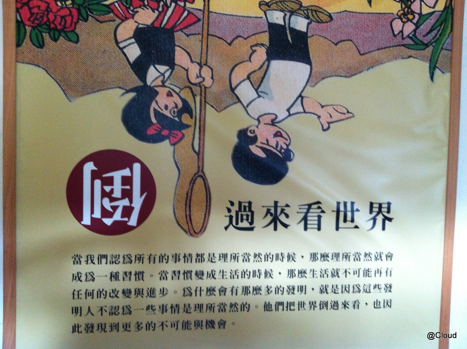 接著離開櫻木花道後,再到劉興欽發明展覽館,劉老先生除了會漫畫,還發明了很多有趣的東西!沒想到 Simon 的舅舅這麼厲害,有點可惜兒上回劉先生來公司時忘了跟他要簽名了!哈哈。而且在漫畫區看了一下他的漫畫《來自外太空的訪客》時,還有點無法自拔,內容推理懸疑,很對我的味口,不過此趟不是來看漫畫的 XD。館內有放劉老先生的手印,沒想到跟豬頭的手很合,都肥肥短短,當然也是熱了他,他說『知道我的手是發明手了吧』