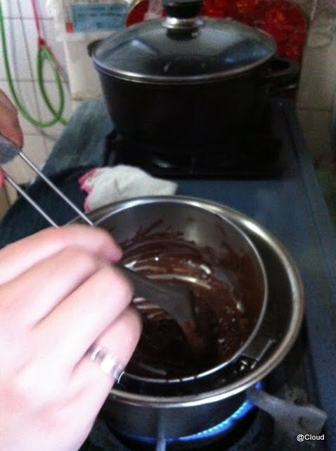 倒是 Molly 挑的苦甜巧克力很好融化,最多是融點到50-60就變得很稀了,相較於我的巧克力的”搞剛”真是容易得很。