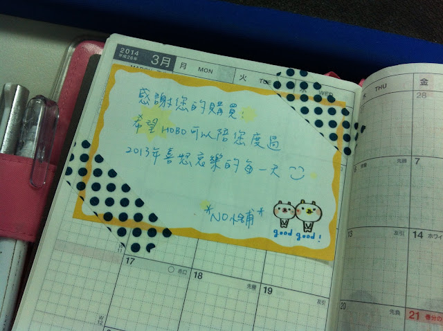 買 HOBO 的時候,賣家送的紙膠帶跟貼心小物語,一併留在 HOBO 留念一下